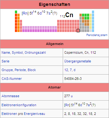 Copernicium ist 277-mal schwerer als Wasserstoff und das schwerste von der