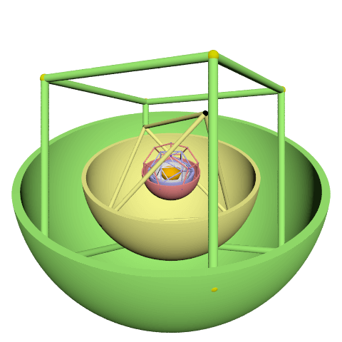 Die innerste Kugelschale des Merkur und die äußerste Kugelschale des Saturn sind am selben Platz.