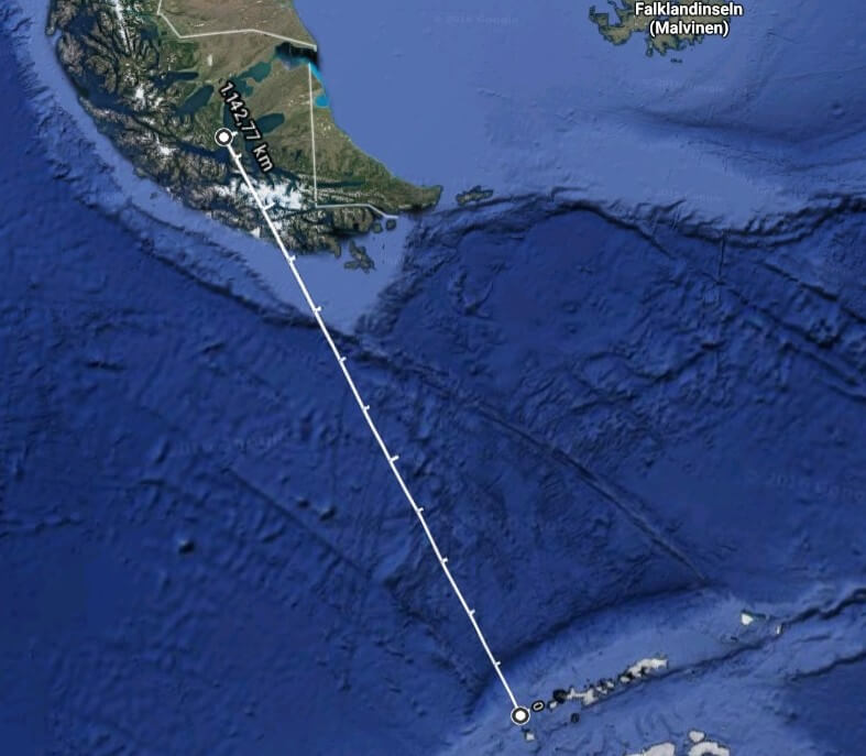 Wir sind noch ca. 1140 km von der Antarktis entfernt und sehen sie natürlich nicht.